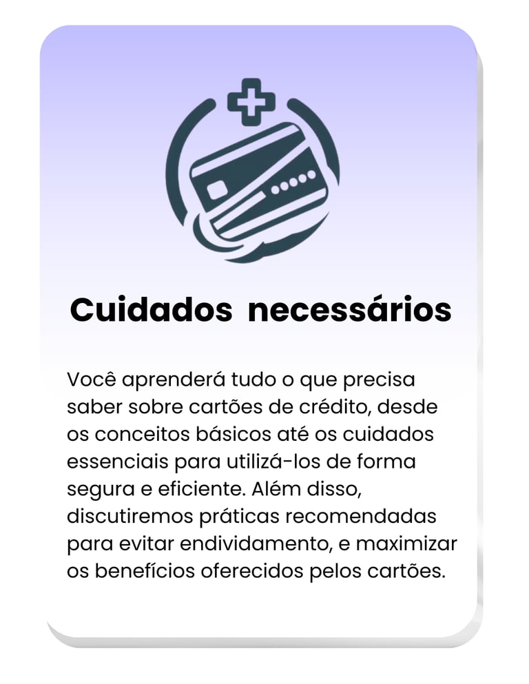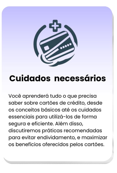 Você aprenderá tudo o que precisa saber sobre cartões de crédito, desde os conceitos básicos até os cuidados essenciais para utilizá-los de forma segura e eficiente. Além disso, discutiremos práticas recomendadas para evitar endividamento, e maximizar os benefícios oferecidos pelos cartões.