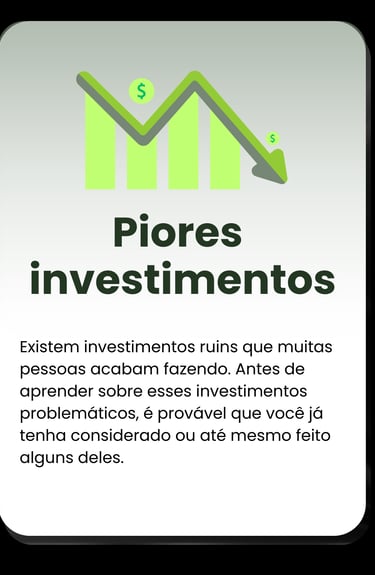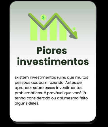 Existem investimentos ruins que muitas pessoas acabam fazendo. Antes de aprender sobre esses investimentos problemáticos, é provável que você já tenha considerado ou até mesmo feito alguns deles.
