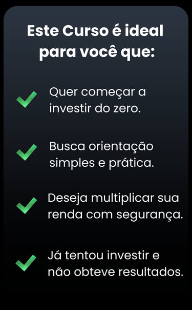 Nós entendemos você. Por isso desenvolvemos nosso Curso de Investimentos.🚀💰